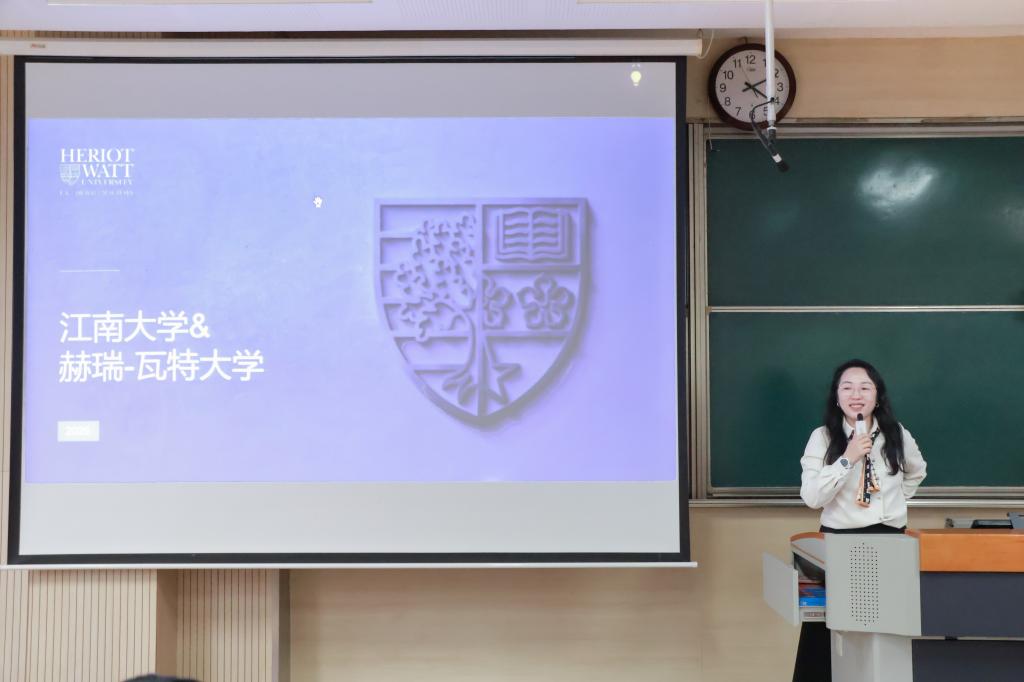接下来,王金晶围绕学院国际交流项目进行全面推介,对英国赫瑞-瓦特大学、布里斯托大学等项目的申请条件、流程安排、支持保障信息进行细致讲解,为同学们规划海外交流访学与深造提供清晰指引与务实支持。
