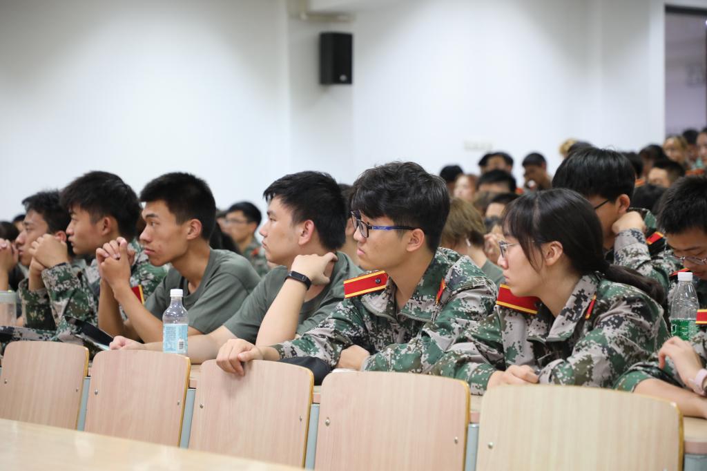 大会开始,服役两年后退伍的段凯同学与新生们进行了经验分享,介绍了入伍原因及政策,同时用幽默风趣的语言讲述了部队生活的有趣之处,让同学们了解到他艰苦却有意义的军队生活。之后,段凯与同学们进行了交流互动,回答同学们对军训的疑惑,并为即将军训的20级学生提供了军训建议,同学们都表示受益匪浅并回以段凯学长热烈掌声。
