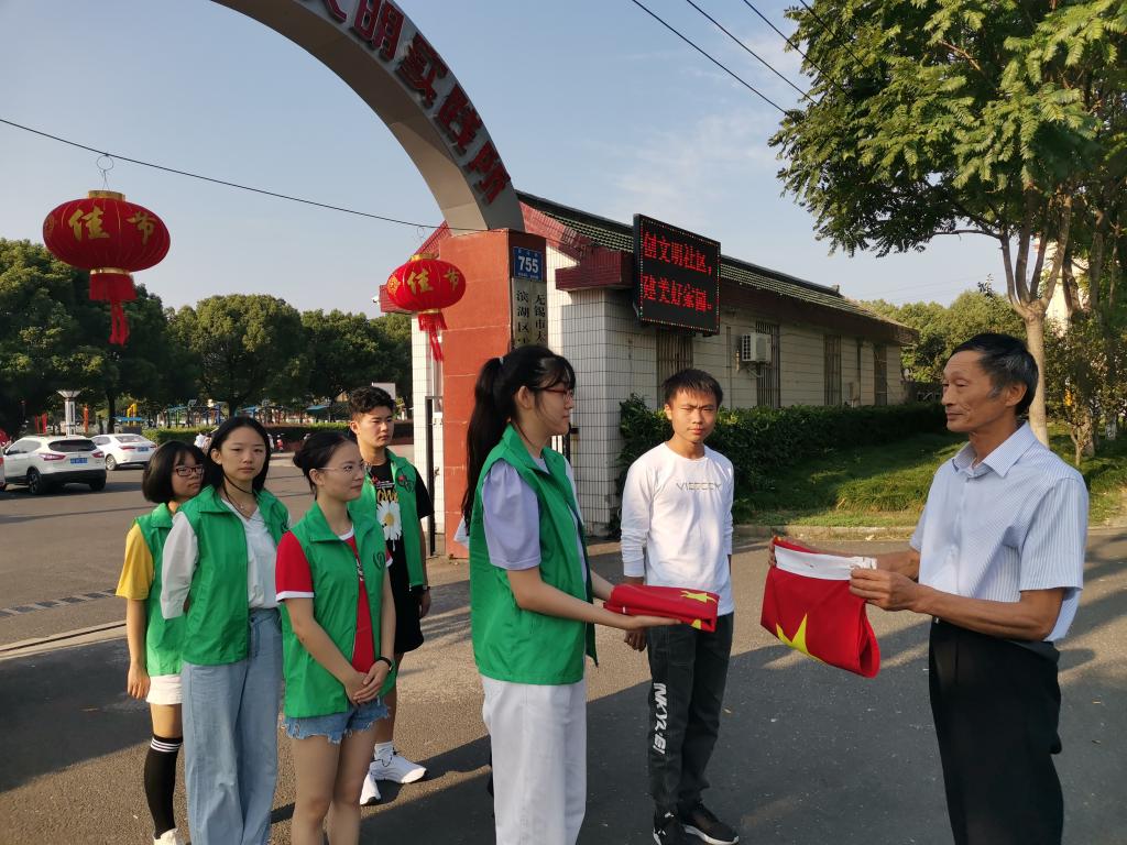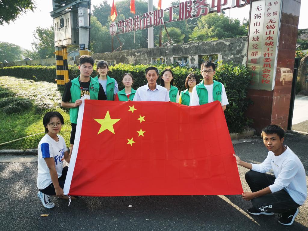 2020级基地班同学来到惠山区一所小学,在简朴庄严的交接仪式后,鲜艳的五星红旗在校园上空冉冉升起,晴空之下更显鲜亮夺目。2020级生物技术专业的十余位同学来到雪浪派出所,看到假期依然坚守岗位、一丝不苟工作的警察同志们,他们怀着深深的敬佩之情,与警察同志共同升起了崭新的国旗,并在国旗下合影留念。2019级酿酒专业的郎绪涛同学是江南大学国旗班的一员,这次他带领本专业同学来到雪浪街道服务中心,向其赠送崭新的国旗,并举行了庄重的升旗仪式,看到迎风飘扬的五星红旗,同学们心潮澎湃。经过同学们的努力,8支队伍一共为10家单位更换了11面国旗,大家以独特的方式为祖国庆生,祝福伟大祖国更加繁荣富强。
