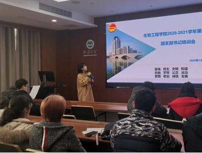 为迎接建党100周年,坚定理想信念,深刻认识中国特色社会主义制度和国家治理体系的科学内涵和显著优势,2020年生工学院分团开展院级主题教育活动35场,团支部开展主题教育百余场。包括学习贯彻党的十九届五中全会精神、学“四史”、学习宣传贯彻习近平总书记贺信、青年大学习等。先后邀请茅台集团原董事长、杰出校友季克良先生,哈尔滨工业大学李垚教授,江南大学原校长陶文沂教授,无锡援鄂首批医疗队队长吴晓龙教授等为同学们开讲授课。2020年朱宝镛大讲堂共举办四期,总期数达一百期。