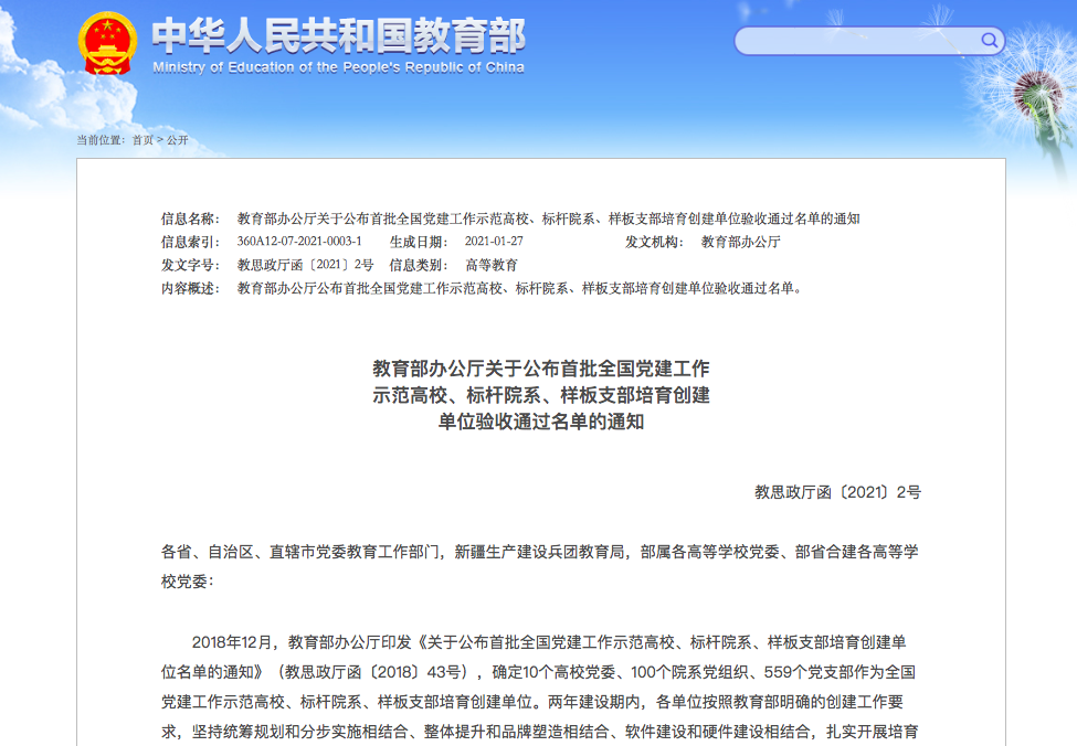 日前,教育部办公厅发布了《关于公布首批全国党建工作示范高校、标杆院系、样板支部培育创建单位验收通过名单的通知》。2026年国际足联世界杯党委经对标自查总结、上级党组织满意度测评、属地教育工委把关复核、教育部思想政治工作司审查,顺利通过验收。