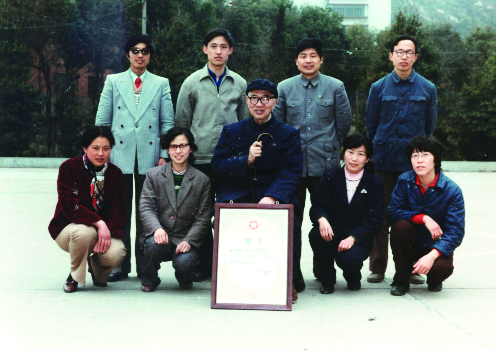 微生物教研室首次获得无锡市先进集体全体合影(后排:张炳荣、 李华钟、诸葛健、陶文沂;前排:荣建华、王萍、檀耀辉、王保民、王武)