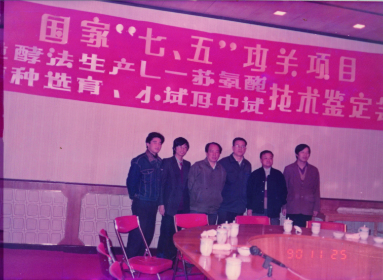 檀耀辉教授主持的七五攻关项目《苏氨酸菌种选育及小试、产品分离提取机中试》技术鉴定会(1990))