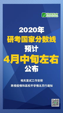 目前,教育部正在会同相关部门认真落实国务院常务会议关于扩大今年硕士研究生招生规模的决定,已向各地各部门下达计划总额,并指导各招生单位在确保培养条件和质量基础上,抓紧安排确定分专业招生计划。招生单位分专业招生计划上报汇总完毕后,教育部将尽快划定2020年国家分数线,预计4月中旬左右公布,相关复试工作安排将视疫情和高校开学情况另行通知。(转自:教育部政务新媒体“微言教育”(微信号:jybxwb))