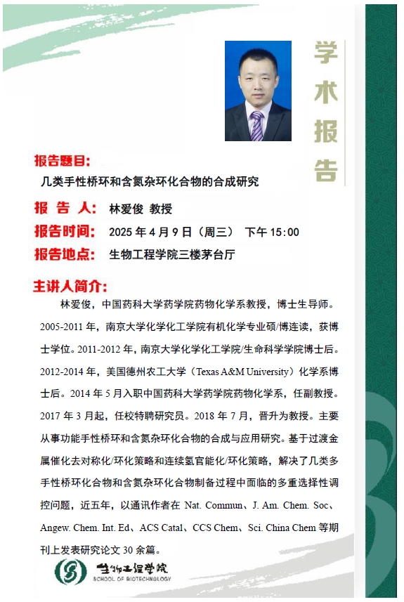 下一篇:4月9日学术报告:金属酶催化自由基不对称非天然反应