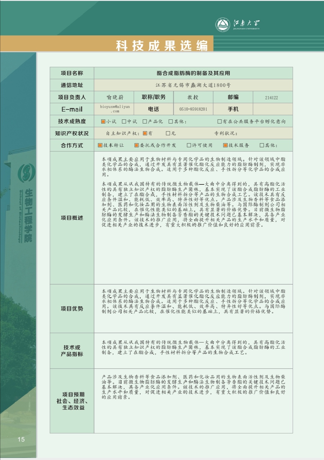 工业生物技术教育部重点实验室