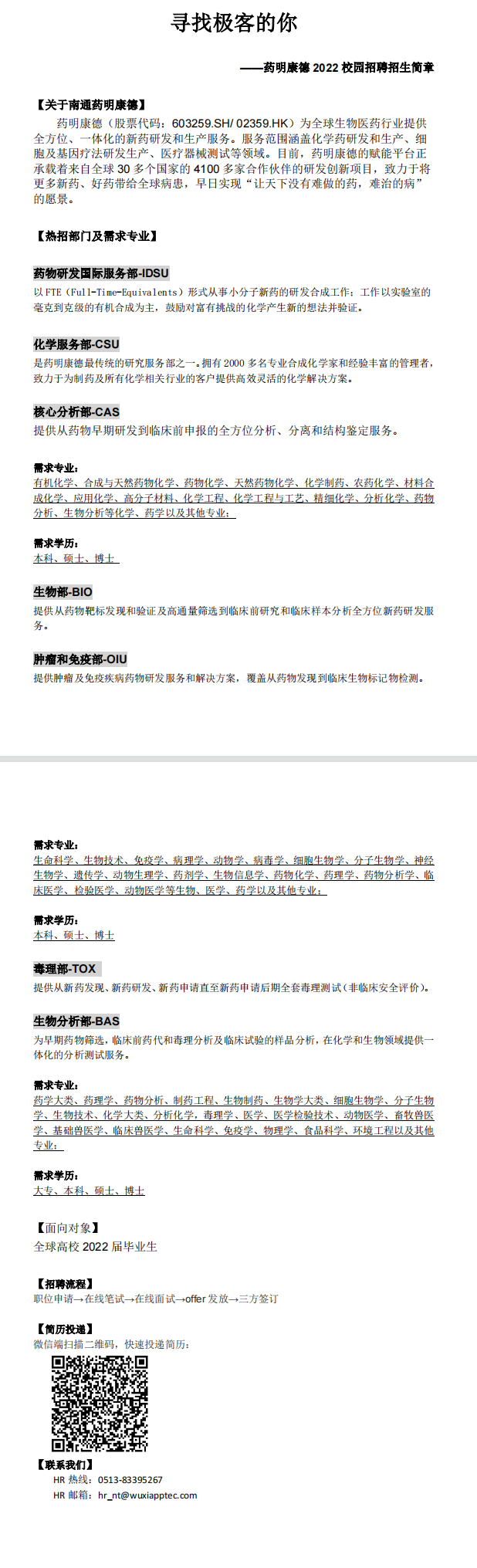 上一篇:生工学院【2022】122号 威尔森校园招聘简章