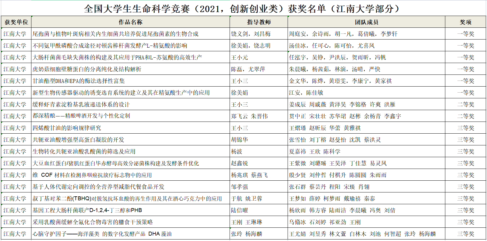 近年来,学校高度重视和支持学生创造精神、创新思维和创业能力教育,以赛促学,依托学科竞赛开展创新创业教育获得了突出成绩,期待江南学子在更广阔的学科竞赛舞台上再添新誉,再创佳绩。
