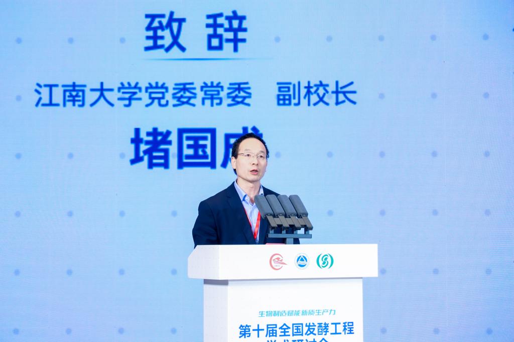 堵国成代表江南大学向各位院士专家的莅临表示诚挚的问候和衷心的感谢。他表示,江南大学作为国家“双一流”建设高校,持续提升办学水平,积极加强人才培养,重视科技服务国家战略和地方重大需求。相信通过本次会议,生物制造在理论创新、技术变革和产品研发等方面将取得更多丰硕成果。