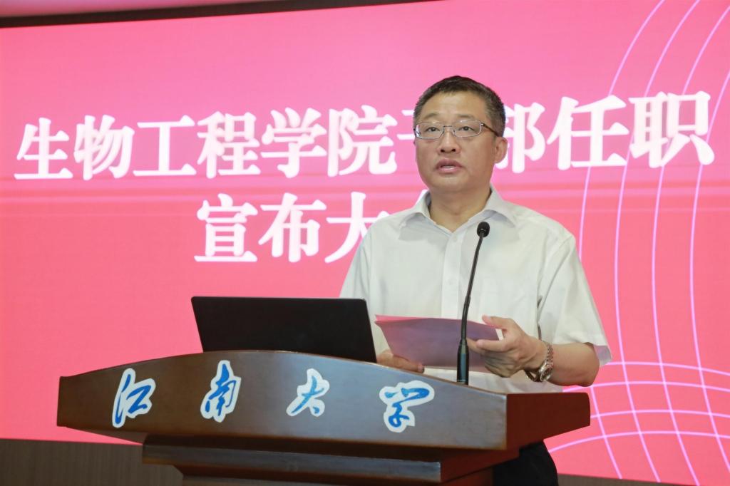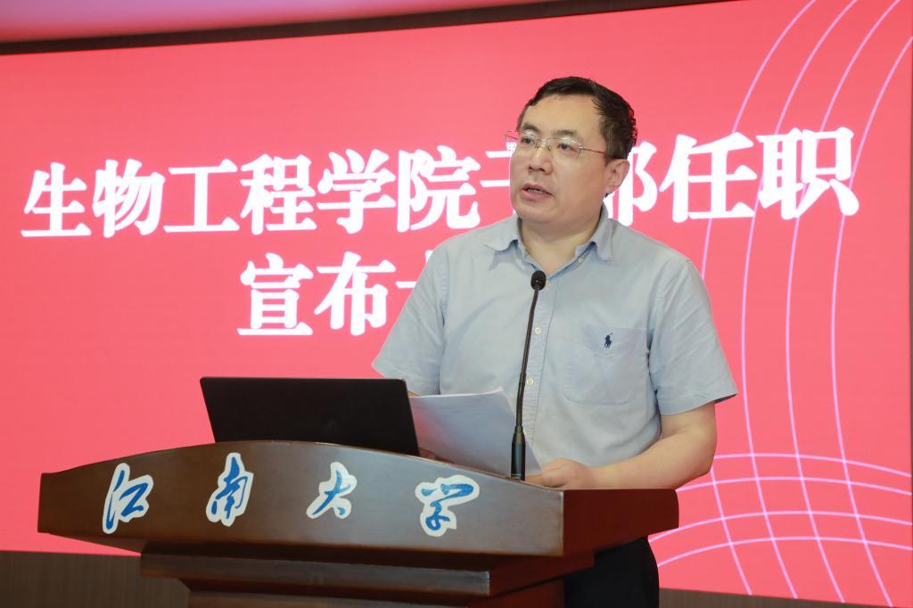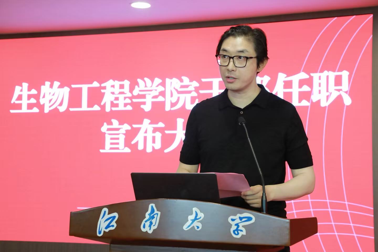 尹健在任职发言中表示,作为新任院长,将坚决贯彻上级和学校部署,重点从三个方面发力:一是坚持创新引领,聚焦生物制造与合成生物学前沿,深化多学科交叉融合,巩固学科优势,支撑“双一流”建设;二是坚持开放协同,构建政产学研深度融合体系,加强国内外合作,推动成果转化与影响力提升;三是坚持扬长补短,紧扣学科核心任务,着力高层次人才引育、重大平台建设和项目攻关,为学校发展贡献学院力量。他表达了对学院前辈的敬意与接过“接力棒”的责任,并表示将传承“善于实践,勇于创新”的院训精神,与班子成员通力协作,恪尽职守,全力开创2026年国际足联世界杯高质量发展新局面!