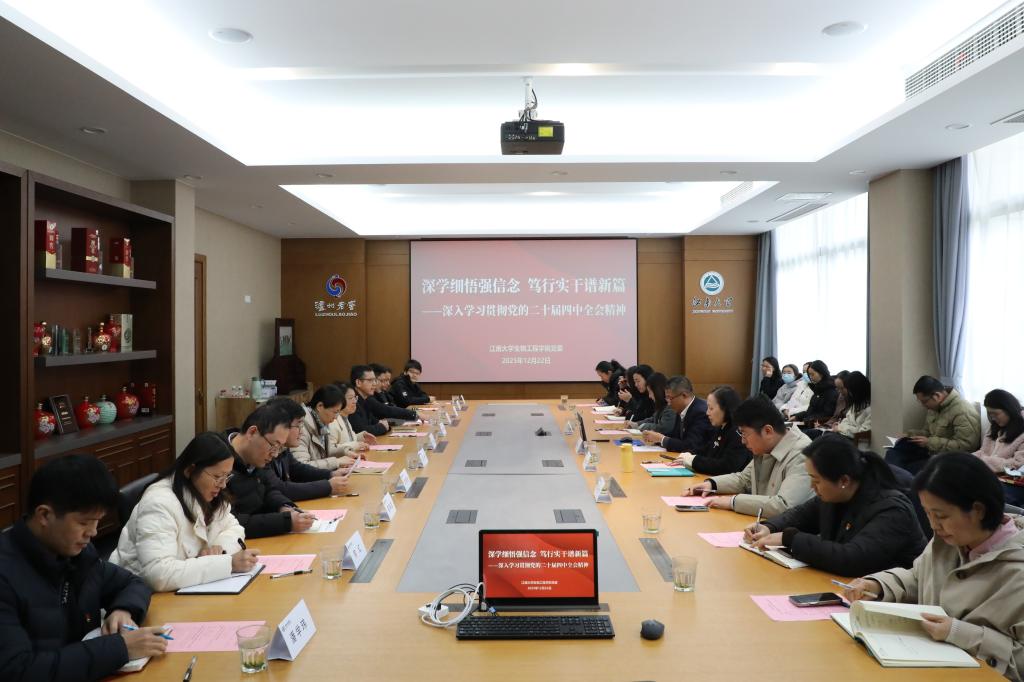 宣讲会后,陈卫校长参加了教工微生物学教学中心党支部“践行四中全会精神,赋能双创工作实践”组织生活会。会上,党支部书记徐美娟作全国党建工作样板支部、高校“双带头人”教师党支部书记工作室、“强国行”专项行动团队创建情况汇报。她回顾了支部根据“一室双融三机制”建设思路,通过实践“三大工程”,建设“三大能力”,赋能人才培养和地方经济社会发展的特色做法和积极成效,并就下一阶段巩固提升、创先争优工作提出了具体规划。