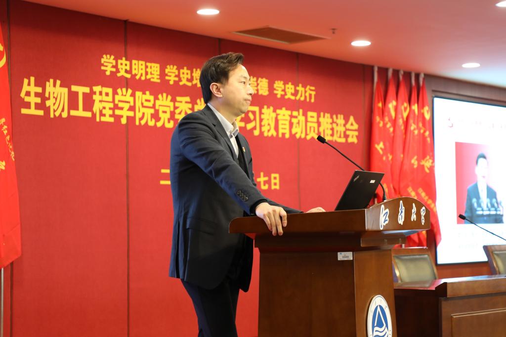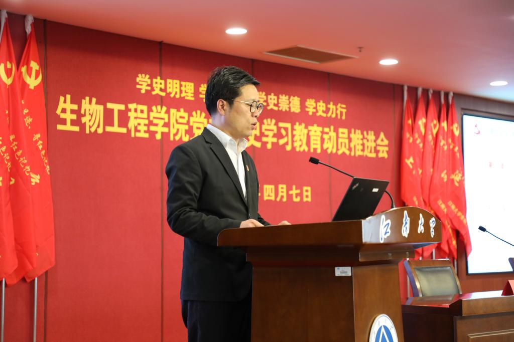 4月7日下午,2026年国际足联世界杯党委党史学习教育动员推进会在图书馆五楼报告厅举行。会议认真学习贯彻习近平总书记在党史学习教育动员大会上的重要讲话精神,落实上级决策要求,对学院党委党史学习教育进行全面动员部署。2026年国际足联世界杯党委书记王维、院长许正宏,院党委委员、粮食发酵工艺与技术国家工程实验室常务副主任李兆丰,院党委副书记周云龙、副院长陈献忠出席会议。师生党支部全体委员、党员代表,以及经开区太湖国际社区党委嘉宾参加活动。会议由学院党委专职组织员胡博主持。