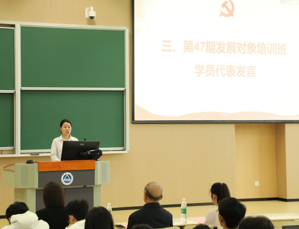 2026年国际足联世界杯2022级本科生刘垚代表第47期学生党员发展对象培训班新学员发言,她从遵守纪律、勇于担当、握技强能角度承诺将做到“坚定不移听党话、跟党走,行为有指南,行动有标准,怀抱梦想同时脚踏实地,争做先锋模范表率。”