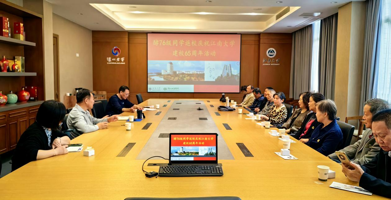 10月20日上午,世界杯发酵工程76级部分校友在阔别校园近50年后重返母校,共叙“发酵情”,共庆建校65周年。学院党委书记程捷音、学校校友会秘书长林云鉴、学院办公室主任徐静等参加了校友座谈会。